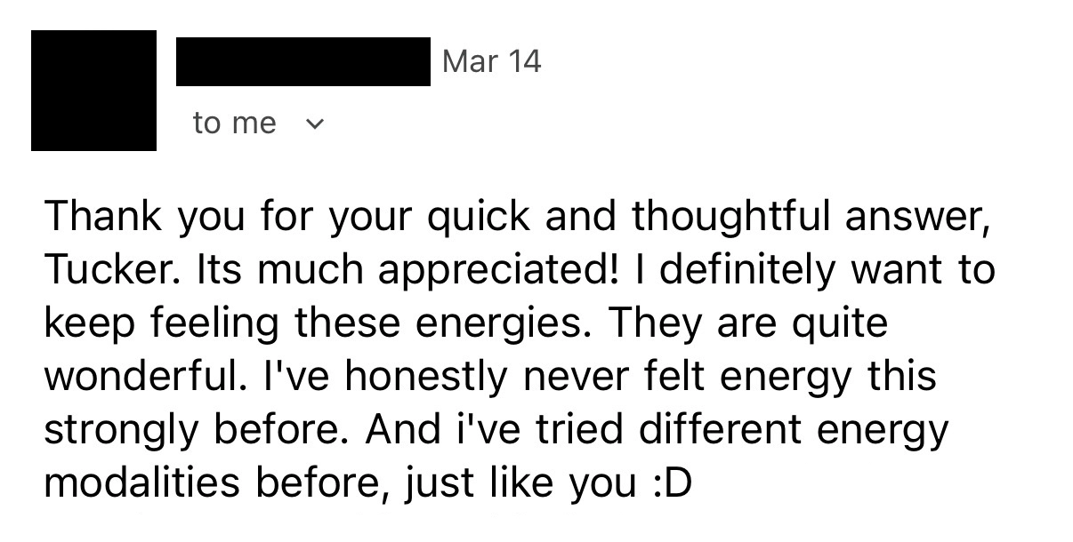 My name is Tucker, I am an energy channeler working with high-vibrational frequencies for spiritual healing & awakening. I’ve been a serious spiritual practitioner for 10 years. It’s important to note that the focus is on YOU and your connection to the energy. I’m just a facilitator and the energy is the one doing the work on you.